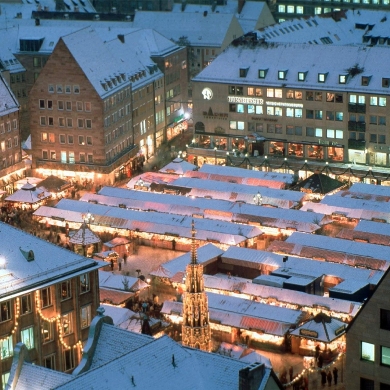 Whether the Christmas Angel, known as the Christkindl, comes from Nuremberg is debatable, but she is certainly at home here. The eyes of children and grown-ups alike light up when she opens the world-famous Nuremberg Christmas market from the gallery of the Church of Our Lady on the Friday before the first Sunday of Advent.